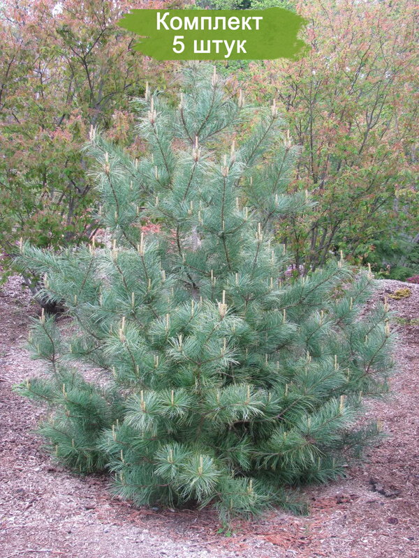 Пакет из пяти саженцев корейского кедра размером 40-60 см предлагается по привлекательной цене, эквивалентной стоимости четырех саженцев. Корейский кедр отличается внушительной и плотной кроной. У молодых деревьев крона имеет форму округлого яйца, тогда как у зрелых она принимает цилиндрическую или коническую форму. С возрастом у деревьев может появляться несколько вершин, что связано с их стремлением максимизировать поглощение питательных веществ и увеличить производство шишек. Вершины могут обламываться из-за тяжести шишек или повреждаться медведями, которые лазают по деревьям в поисках шишек.