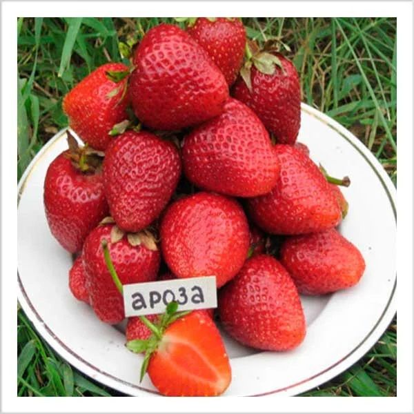 Сорт клубники "Ароза" был выведен в Италии и отличается средним сроком созревания. Этот сорт получен путем скрещивания американского сорта "Чендлер" и итальянского сорта "Мармелада". Ягоды "Ароза" крупные, имеют форму приплюснутого конуса и высокую плотность. Созревшие плоды окрашены в ярко-красный с оранжевым оттенком цвет и обладают характерным блеском. Кусты этого сорта среднерослые и компактные.